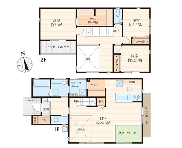 日当たり良好 WIC・SIC完備 カースペース3台OK 24帖の広々LDK リビング階段 大型パントリー付きキッチン