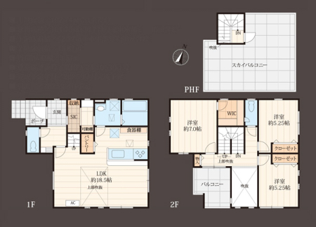 カースペース2台可 日当たり良好 WIC・SIC完備 子供のプールや家族菜園も楽しめるスカイバルコニー付 吹抜け