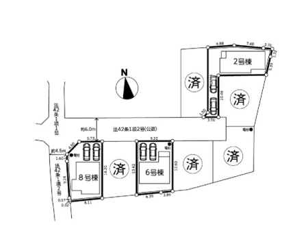 | セールスコメント | 開発区域面積1,272,24u 開発道路(249,41u)は市に移管済 宅地3付近に存した古井戸は、お祓い後埋井済です。 |
