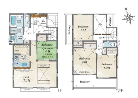 | 採光面 | - | 構造/階数 | 木造/地上2階建 |